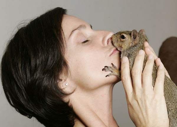 She hides nuts throughout Saites' apartment and "chatters" when she feels threatened. She climbs and jumps from furniture and cracks open nuts with her front teeth.